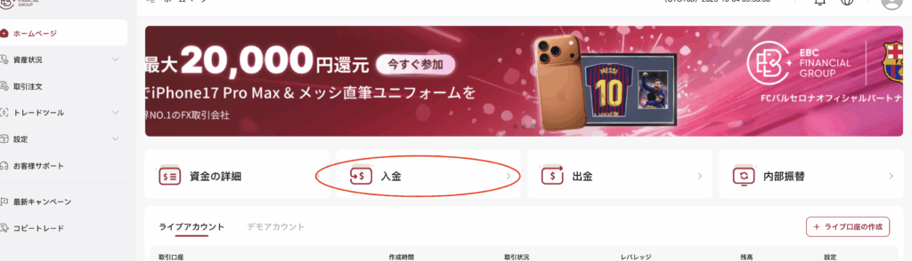 STEP.2 – EBC FINANCIAL GROUP証券口座へ入金