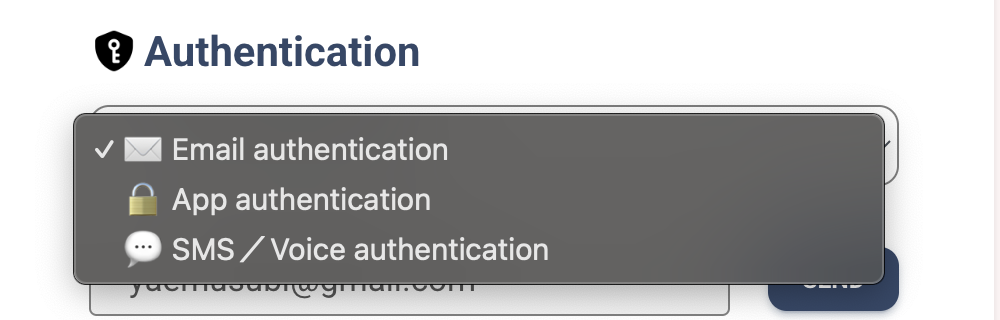 4.Authenticationは3パターンがありますが今回はメールでいきましょう